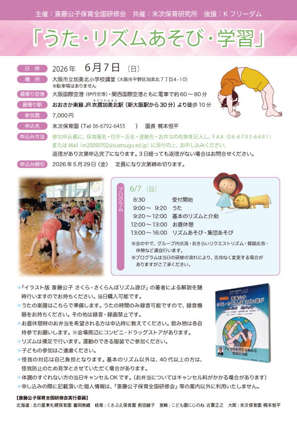イラスト版 斎藤公子 さくら・さくらんぼリズム遊び』の著者による解説を随時行いますのでお持ちください。当日購入可能です。(2,700円)